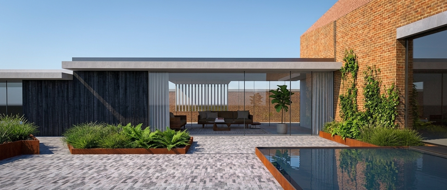In deze ingesloten buitenruimte wordt ook nog een vijver ingeplant.